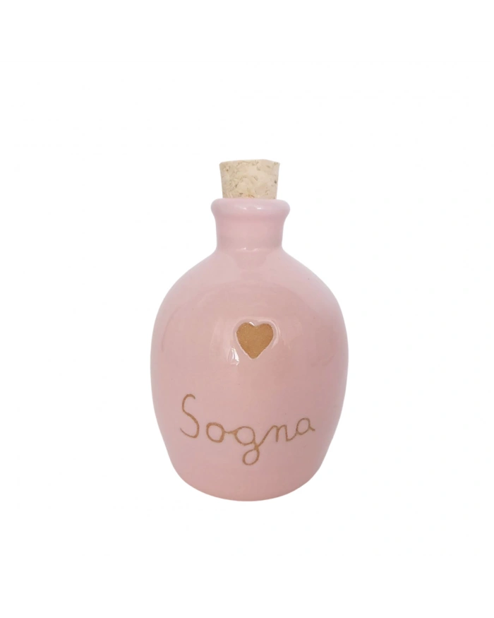 Bottiglia Bombata Rosa "Sogna" 100 ml Cuore Terracotta in Ceramica