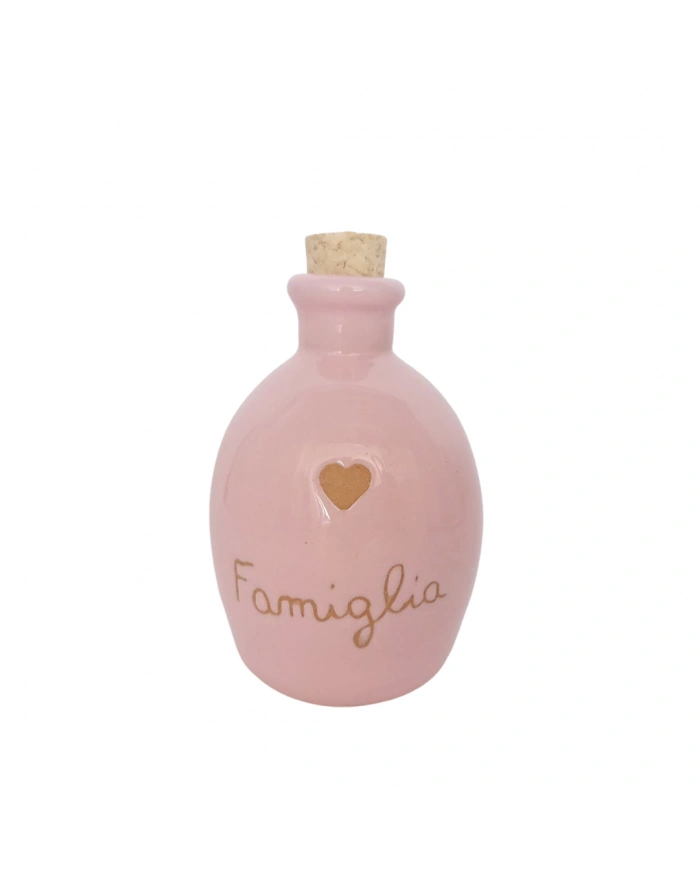 Bottiglia Bombata Rosa "Famiglia" 100 ml Cuore Terracotta in Ceramica