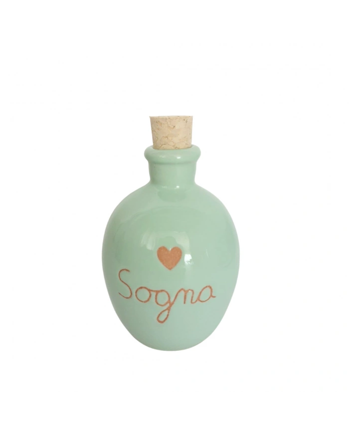 Bottiglia Bombata Verde Pastello "Sogna" 100 ml Cuore Terracotta in Ceramica