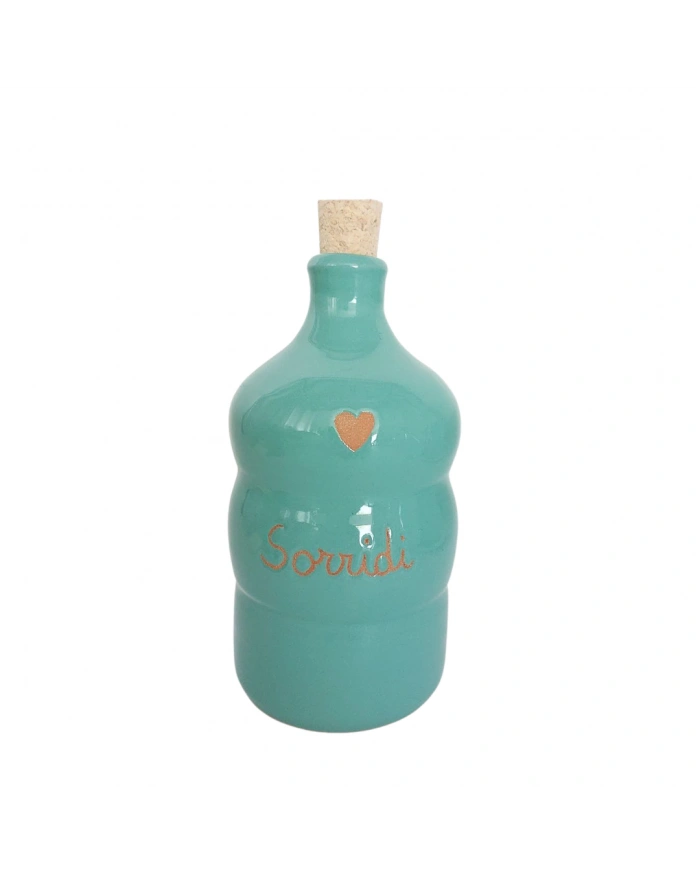 Bottiglia Verde Marino 250 ml "Sorrisi" Cuore Terracotta in Ceramica