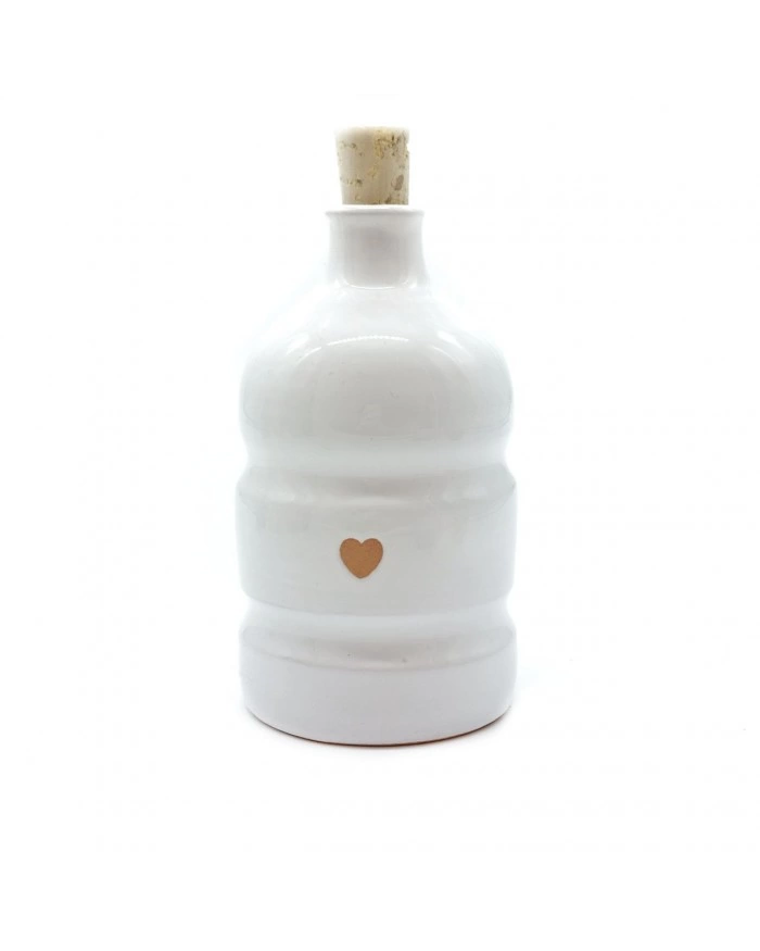 Bottiglia Bianca Incisione Cuore Centrale 250 ml in Ceramica