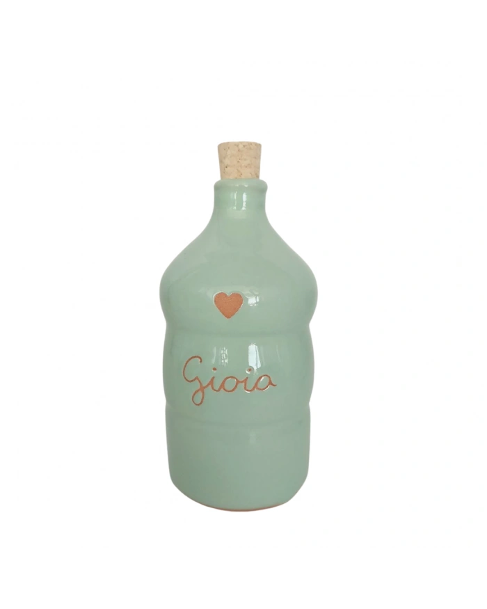Bottiglia Verde Pastello "Gioia" 250 ml Cuore Terracotta In Ceramica