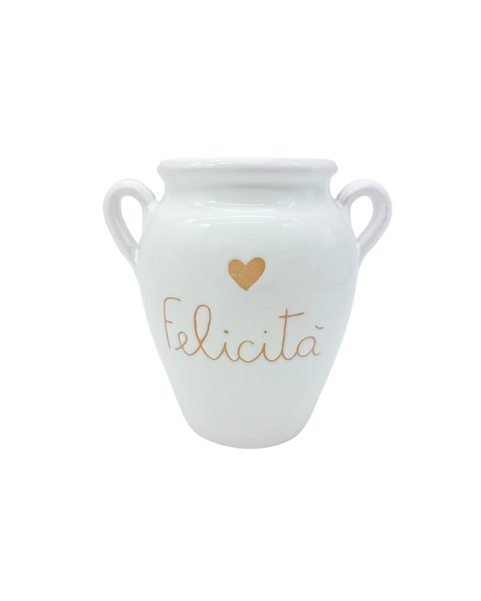 Anfora Bianca "Felicità" Decoro Cuore Terracotta H. 13 cm in Ceramica