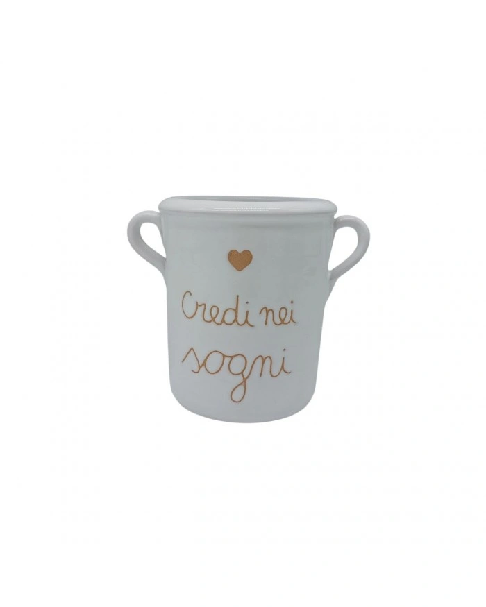 Capasa Bianca "Credi nei sogni" Decoro Cuore Terracotta H. 13 cm in Ceramica