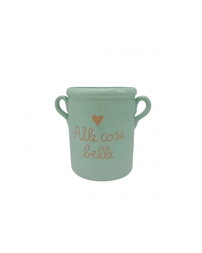 Capasa Verde Acqua "Alle cose belle" Decoro Cuore Terracotta H. 13 cm in Ceramica