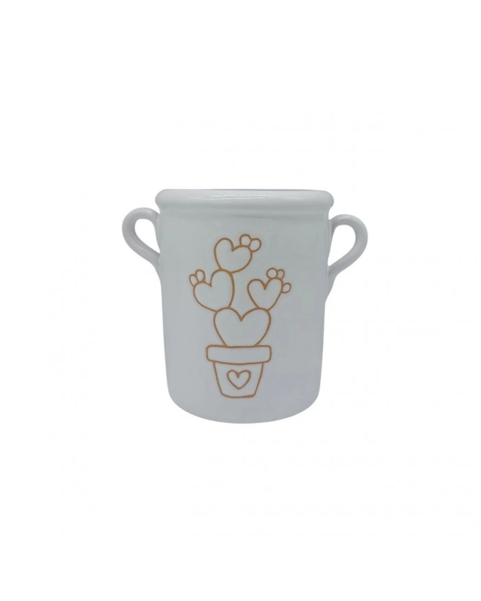 Capasa Bianca "Cactus Cuore" Decoro Cuore Terracotta H. 13 cm in Ceramica
