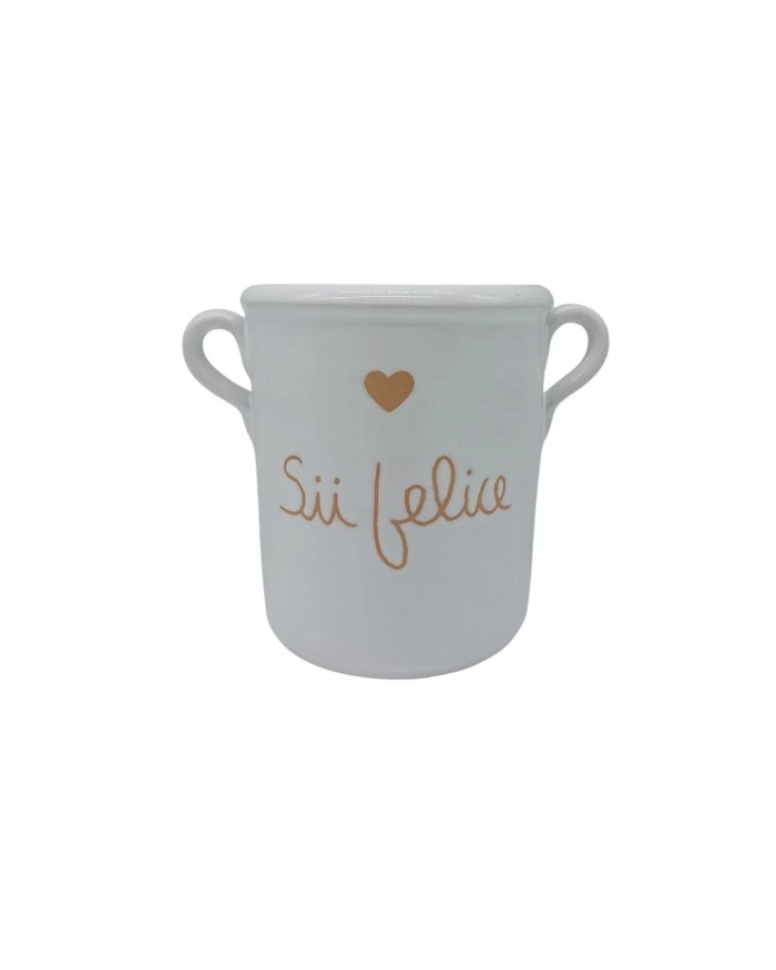 Capasa Bianca "Sii felice" Decoro Cuore Terracotta H. 13 cm in Ceramica