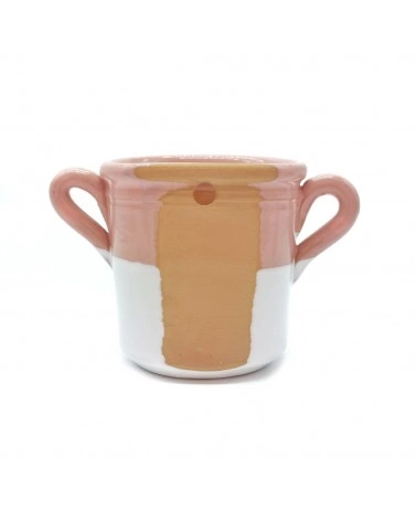 Capasa con decoro in ceramica interamente realizzata a mano. Anticamente veniva utilizzata per conserve a base di verdure, oggi le proponiamo come portapiante, portatovaglioli, portamestoli o portafiori.