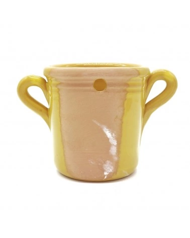 Capasa con decoro in ceramica interamente realizzata a mano. Anticamente veniva utilizzata per conserve a base di verdure, oggi le proponiamo come portapiante, portatovaglioli, portamestoli o portafiori.