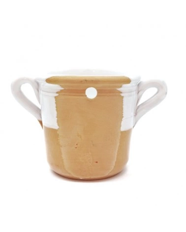 Capasa con decoro in ceramica interamente realizzata a mano. Anticamente veniva utilizzata per conserve a base di verdure, oggi le proponiamo come portapiante, portatovaglioli, portamestoli o portafiori.