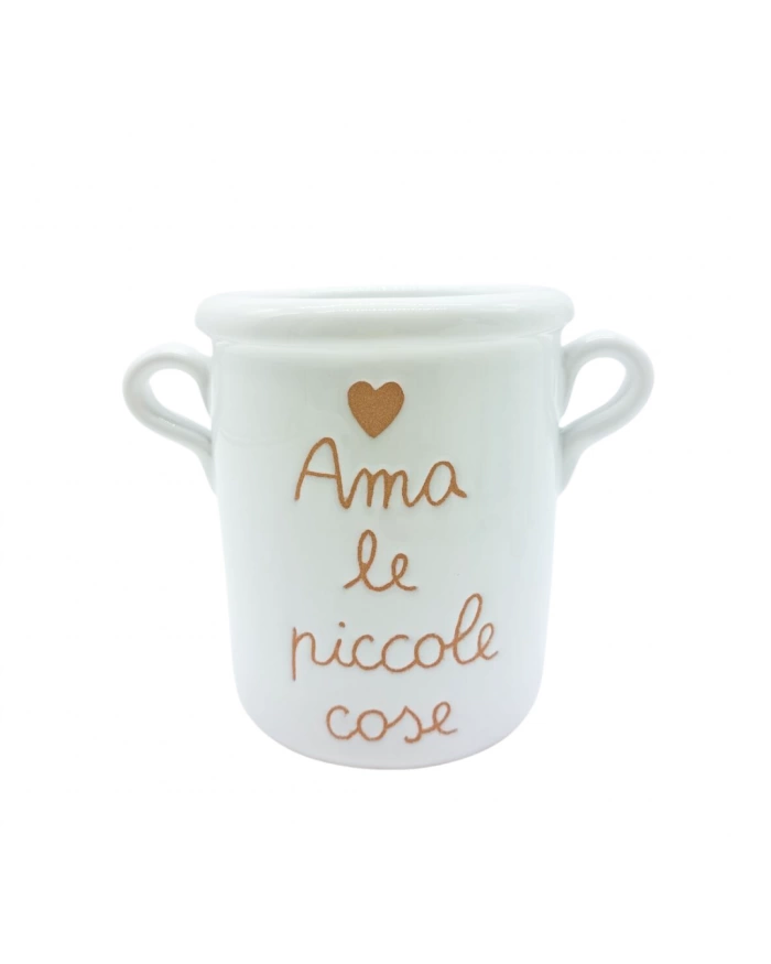 Capasa Bianca "Ama le piccole cose" Incisone Cuore Terracotta H. 13 cm