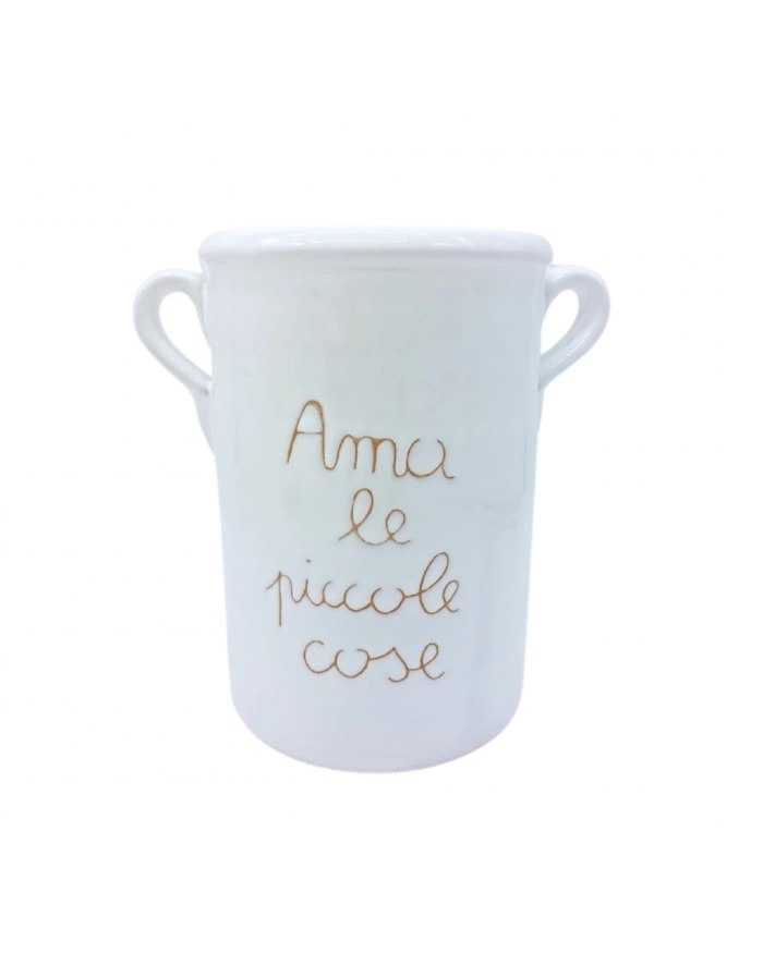 Capasa Bianca "Ama Le Piccole Cose" H. 18 cm in Ceramica