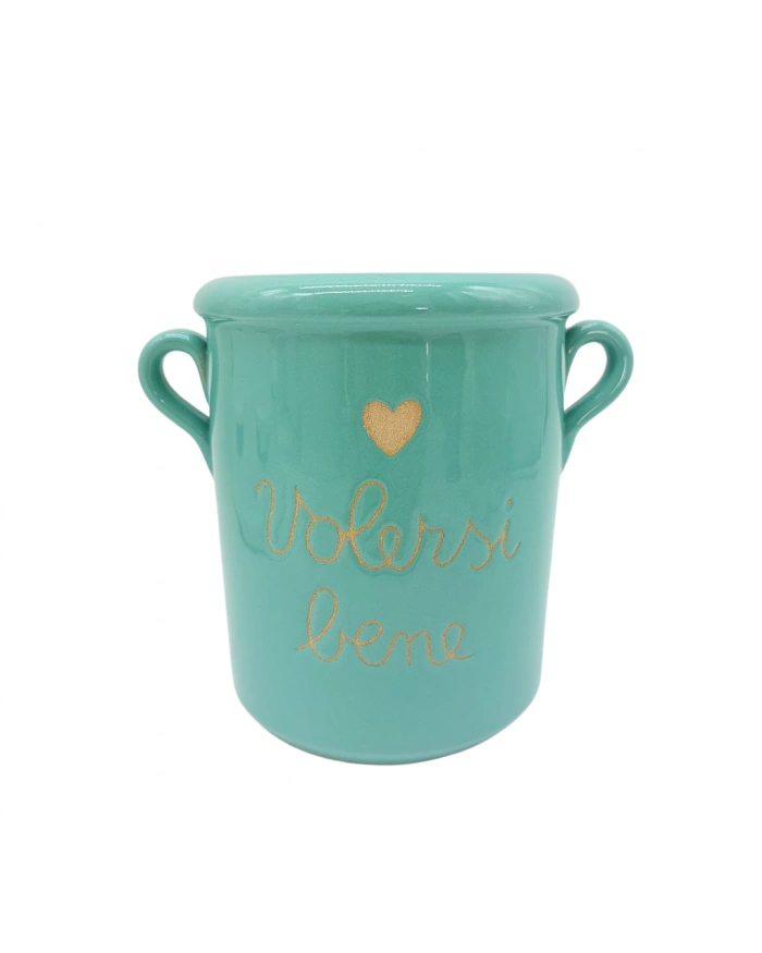 Capasa Verde Marino "Volersi Bene" Decoro Cuore Terracotta H. 13 cm
