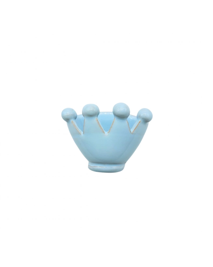 Corona in ceramica interamente realizzata a mano, da utilizzare come svuotatasche, portacandele o elemento d’arredo.