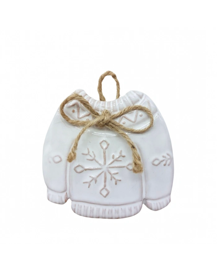 Maglioncino Natalizio Bianco H.10 cm in Ceramica