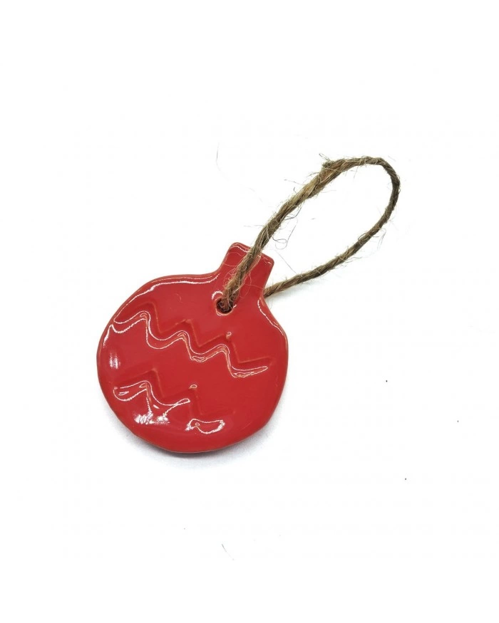 Decorazione Sfera Natalizia Rossa Decoro Onda H. 6-7 cm in Ceramica