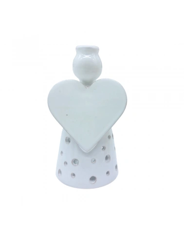 Angelo Bianco Portacandela Con Cuore H. 17 cm