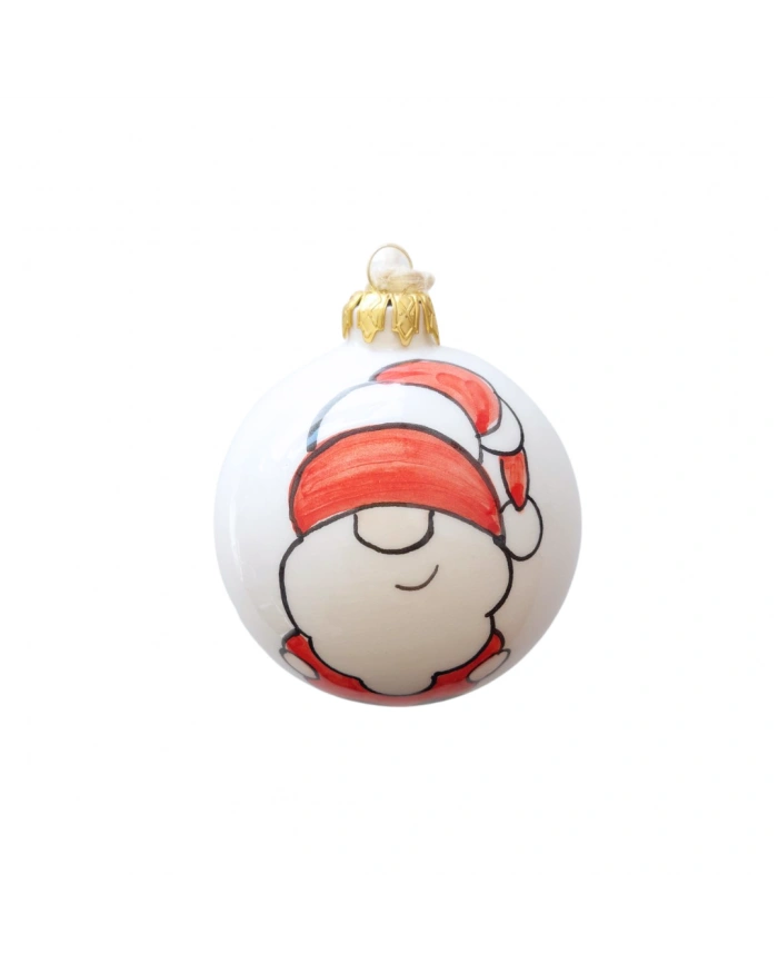 Sfera Decorativa Natalizia Gnomo Cappello Rosso Fasce H. 8 cm
