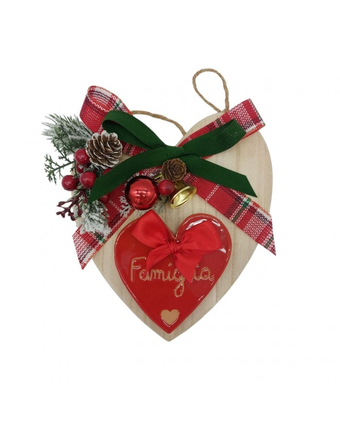 Cuore Legno Con Decoro Cuore "Famiglia" In Ceramica