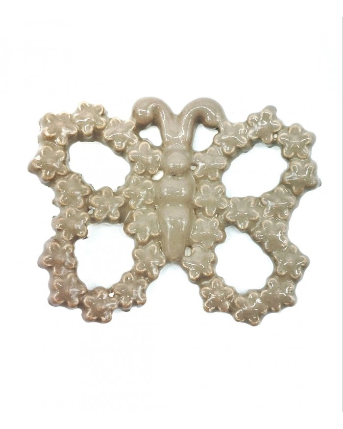 Farfalla Tortora Decoro Fiorellini con Magnete H. 6 cm in Ceramica