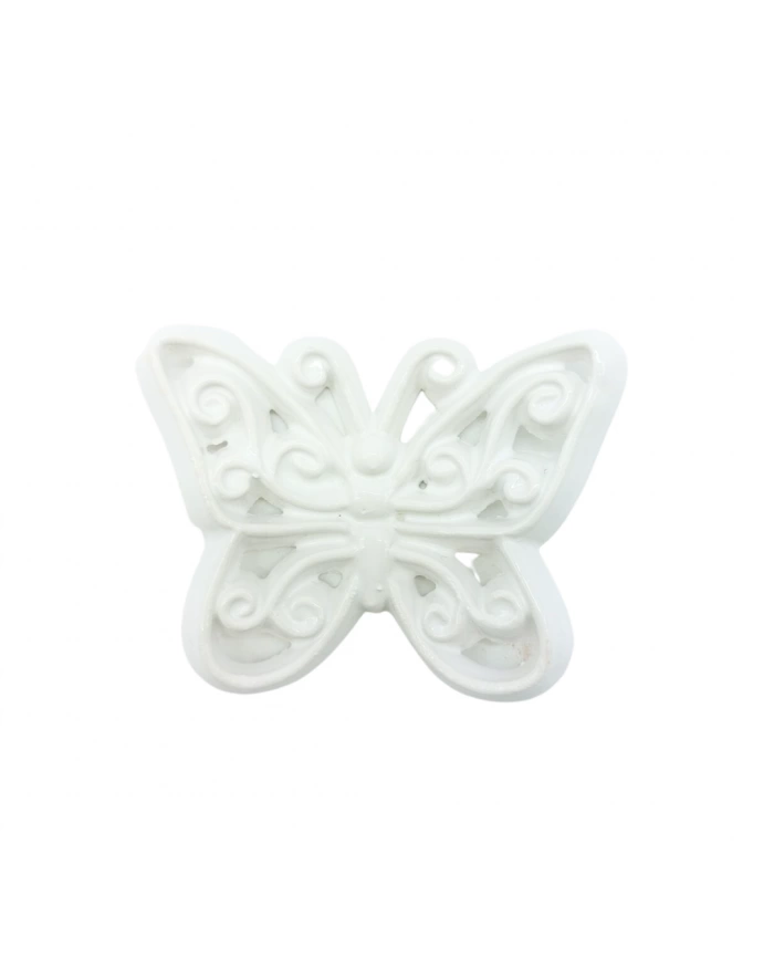 Farfalla Bianca "Decoro Onda" Con Magnete H. 6 cm in Ceramica