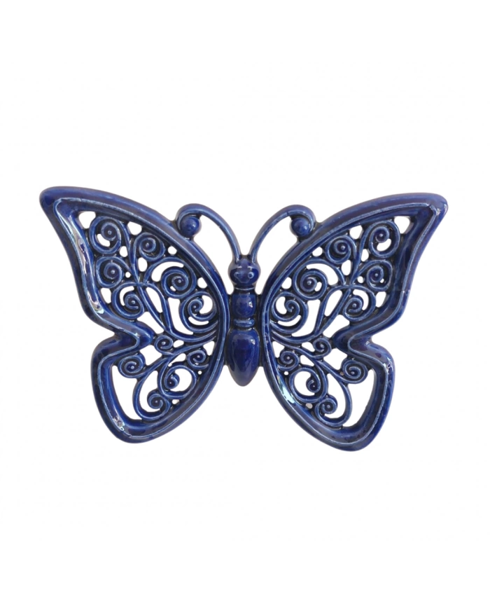 Farfalla Blu Decoro Riccio H. 13 - 14 cm in Ceramica