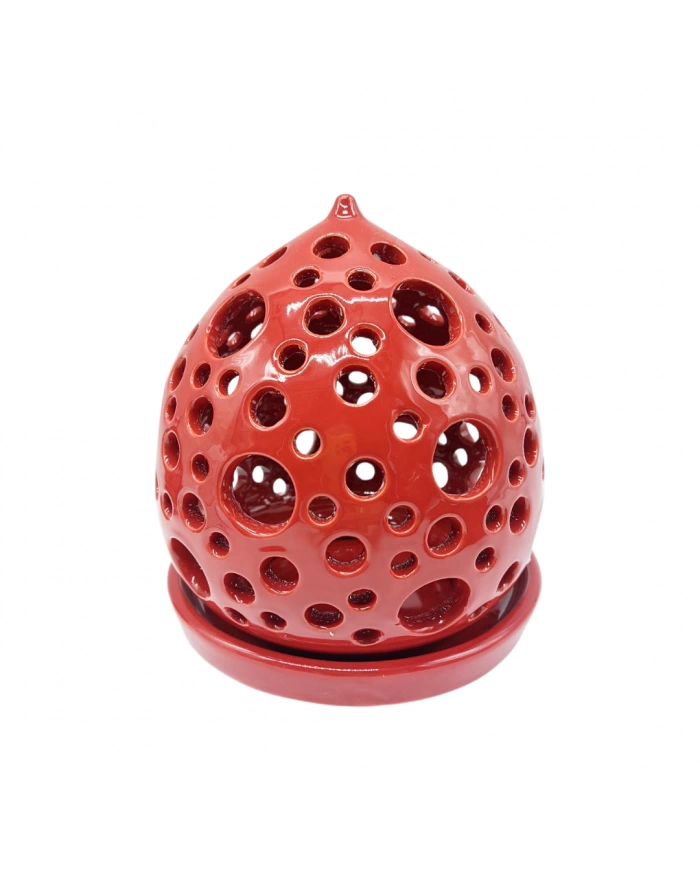 Lanterna Rossa Decoro "Bolle" Con Piattino H. 16cm in Ceramica