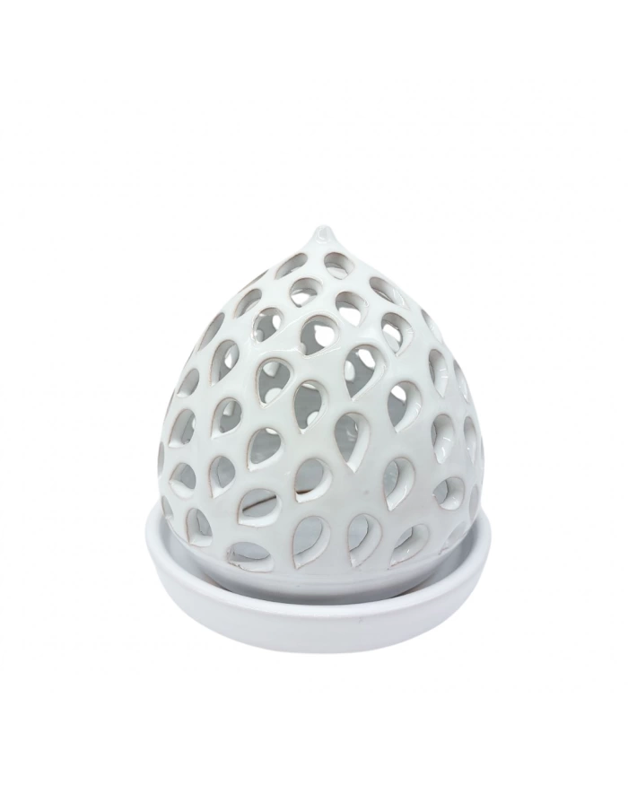 Lanterna Bianca Decoro "Bolla" Con Piattino H. 14cm in Ceramica