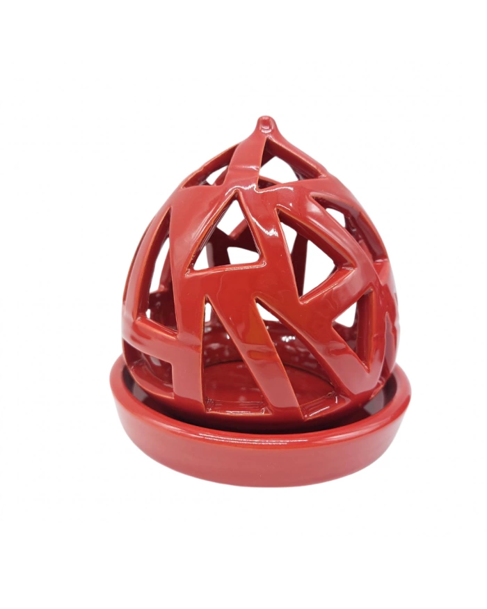 Lanterna Rossa Decoro Geometrico con Piattino H. 12 cm in Ceramica