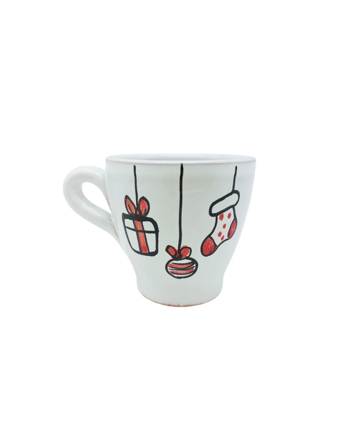 Tazzina Bianca Decori Natalizi H. 7 cm in Ceramica