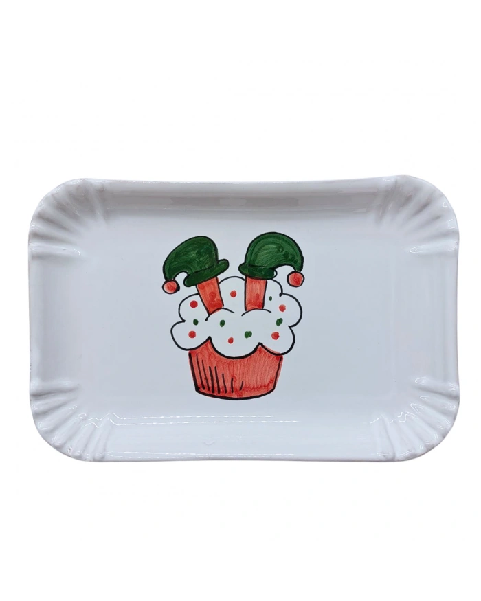Vassoio Bianco Natalizio Decoro "Pasticcino" in Ceramica