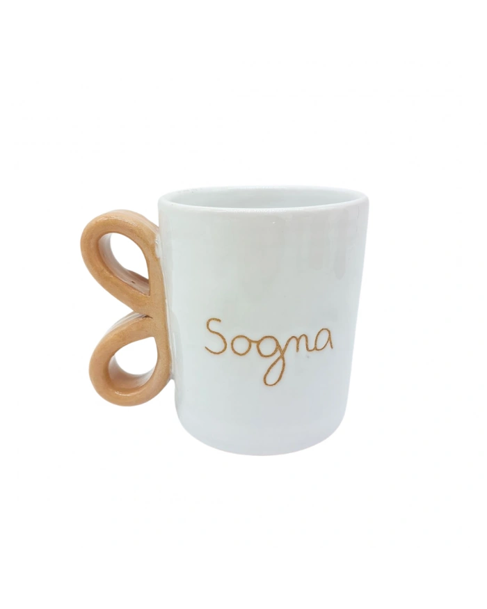 Tazza Mug Bianca Incisione "Sogna" Manico Fiocco H. 10-11 cm in Ceramica