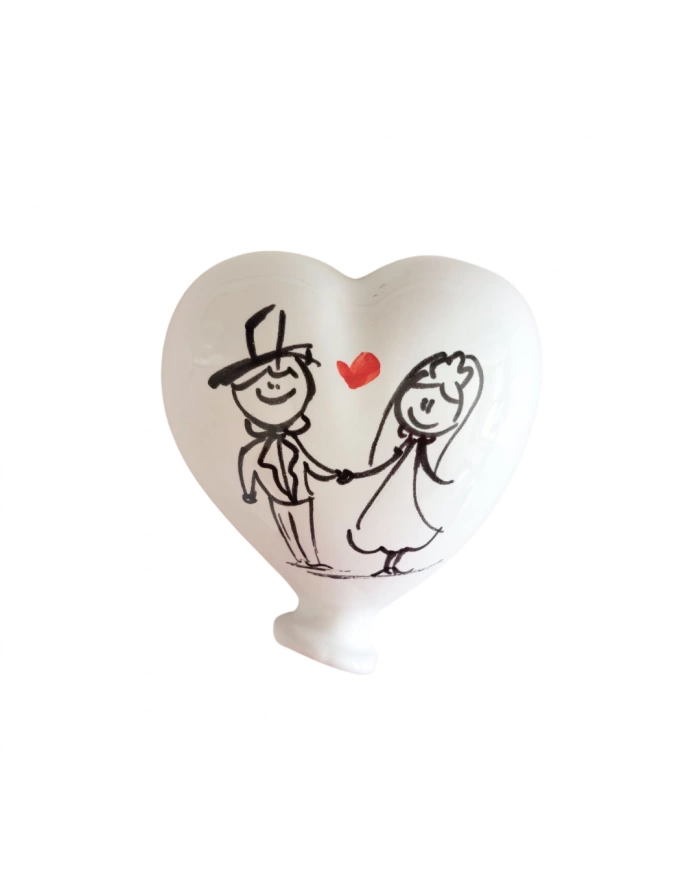 Palloncino Cuore Bianco Decoro "Sposi" con Magnete H. 6 cm in Ceramica