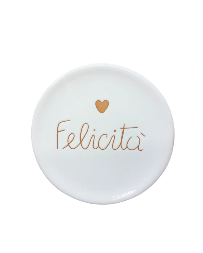 Piatto Bianco "Felicità" Incisione Cuore Terracotta Diametro 18 cm