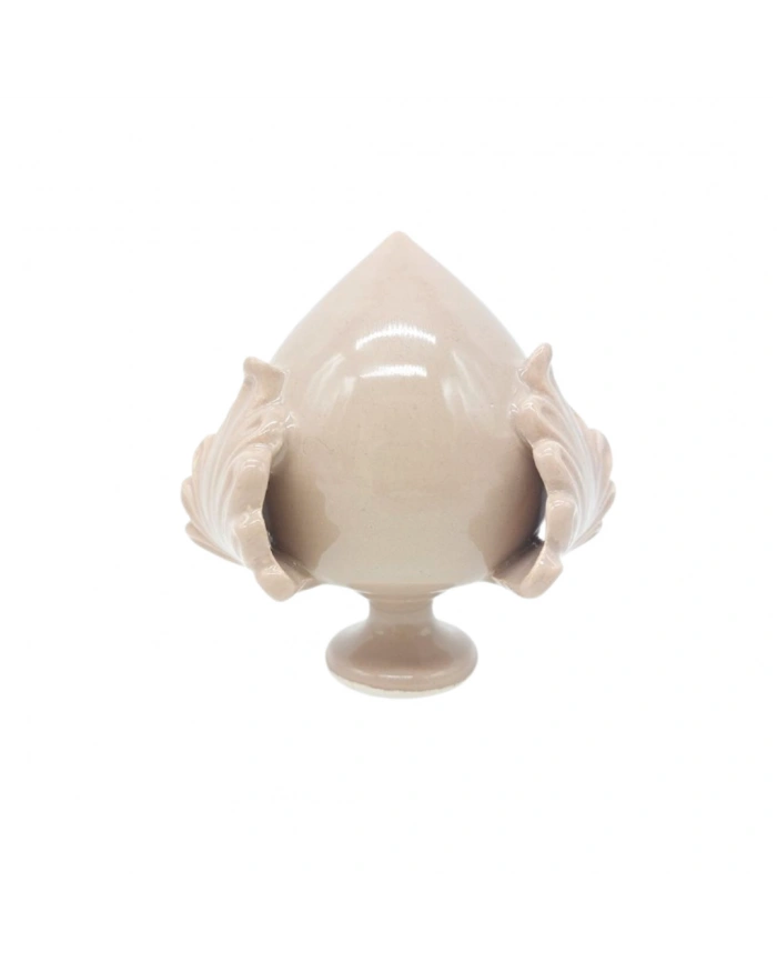 Tre foglie di acanto avvolgono il tipico pumo, nato dalle abili mani e dal cuore dei nostri artigiani. È tra gli oggetti che rappresentano in modo innegabile l’artigianato pugliese e ricordano la nascita di un fiore o di un frutto. Un bocciolo di ceramica portatore di ricchezza e fecondità!