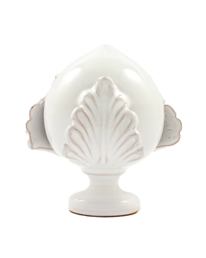Tre foglie di acanto avvolgono il tipico pumo, nato dalle abili mani e dal cuore dei nostri artigiani. È tra gli oggetti che rappresentano in modo innegabile l’artigianato pugliese e ricordano la nascita di un fiore o di un frutto. Un bocciolo di ceramica portatore di ricchezza e fecondità!