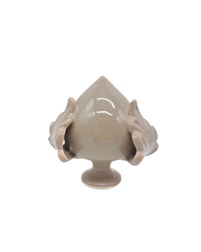 Tre foglie di acanto avvolgono il tipico pumo, nato dalle abili mani e dal cuore dei nostri artigiani. È tra gli oggetti che rappresentano in modo innegabile l’artigianato pugliese e ricordano la nascita di un fiore o di un frutto. Un bocciolo di ceramica portatore di ricchezza e fecondità!