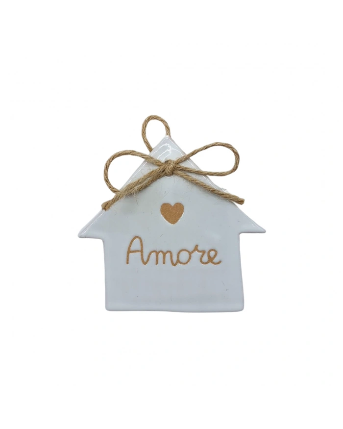 Casetta Bianca Con Incisione "Amore" H.10 cm In Ceramica