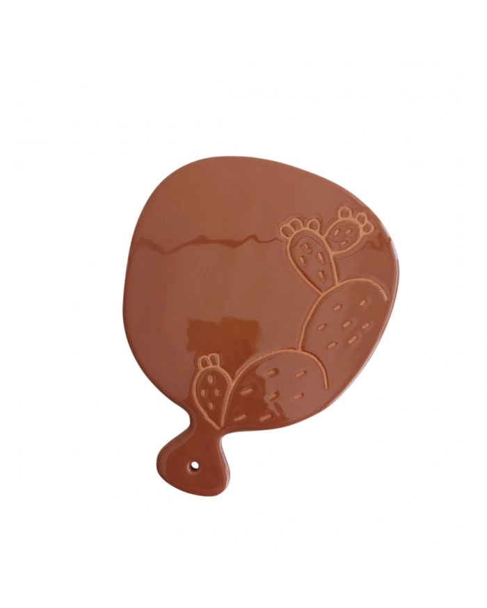 Tagliere Terracotta Incisione Cactus H. 25 cm in Ceramica