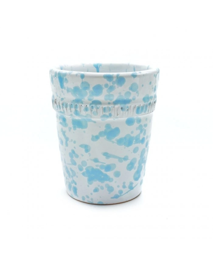 Vaso Portapianta Schizzato Celeste Con Decoro H. 10 cm