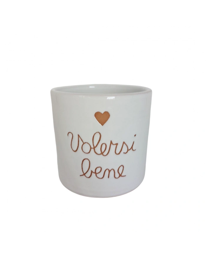 Vaso Bianco Incisione "Volersi Bene" Decoro Cuore Terracotta H.11 cm In Ceramica