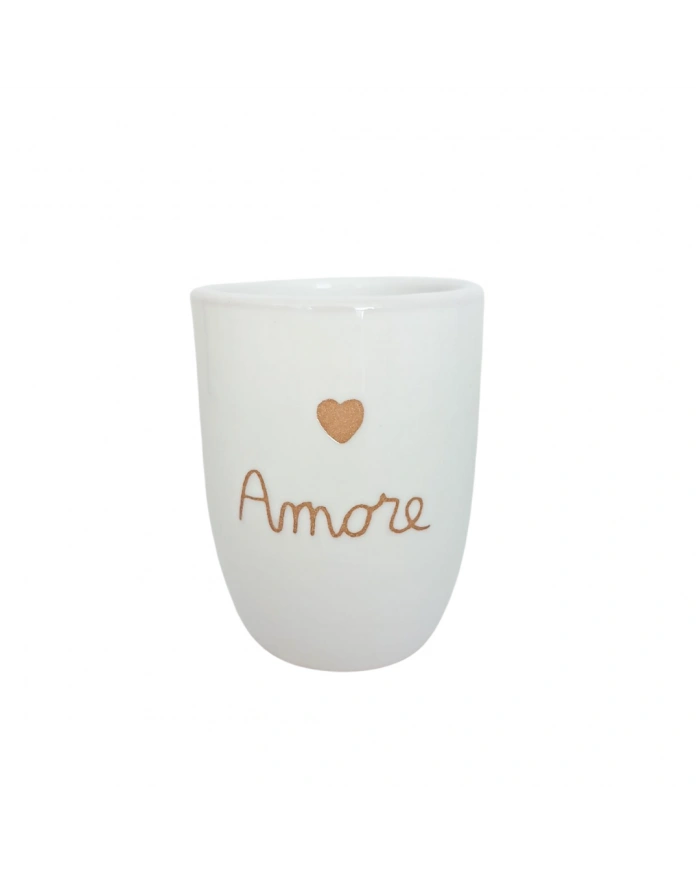 Vasetto Bicchiere Bianco "Amore" H. 10 cm Cuore Terracotta In Ceramica
