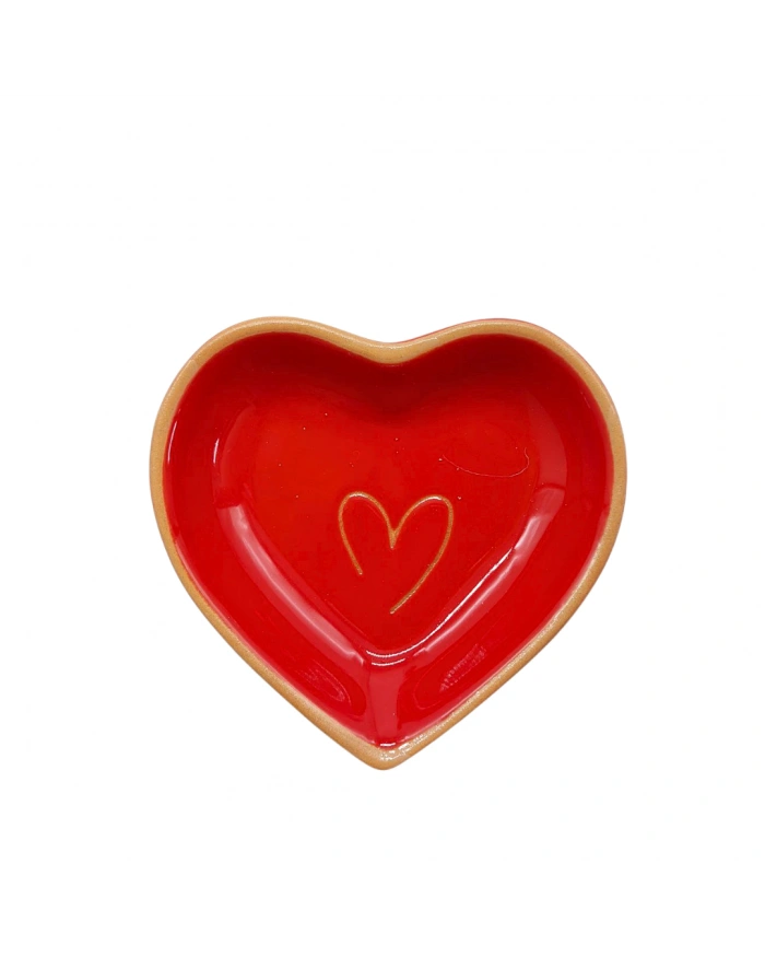 Vassoio Cuore Rosso Decoro Cuore H. 12cm in Ceramica