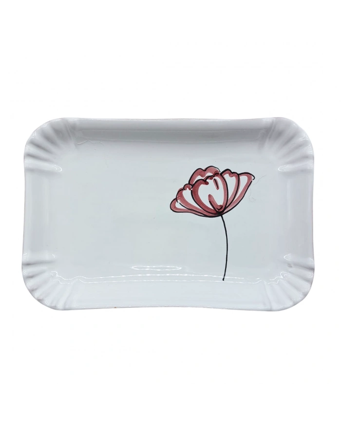 Vassoio Bianco Decoro Fiore Dipinto L. 23 cm in Ceramica
